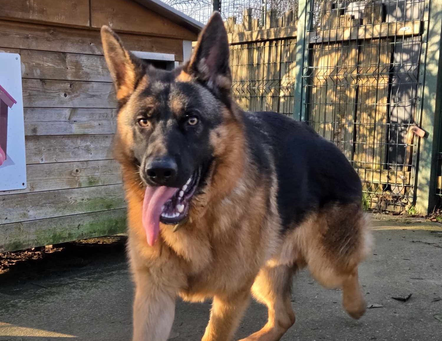 Je suis un chien joyeux, affectueux, plein de vie, bref j’ai tout d’un excellent chien de famille ! J’ai une faiblesse à l’arrière train due aux mauvaises sélections de ma race alors il faudra me limiter au niveau des sauts, des escaliers, etc, mais ça ne m’empêche pas de faire le fou.