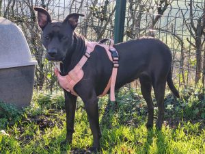Je suis un chien joyeux, affectueux, plein de vie, bref j’ai tout d’un excellent chien de famille ! J’ai une faiblesse à l’arrière train due aux mauvaises sélections de ma race alors il faudra me limiter au niveau des sauts, des escaliers, etc, mais ça ne m’empêche pas de faire le fou.
